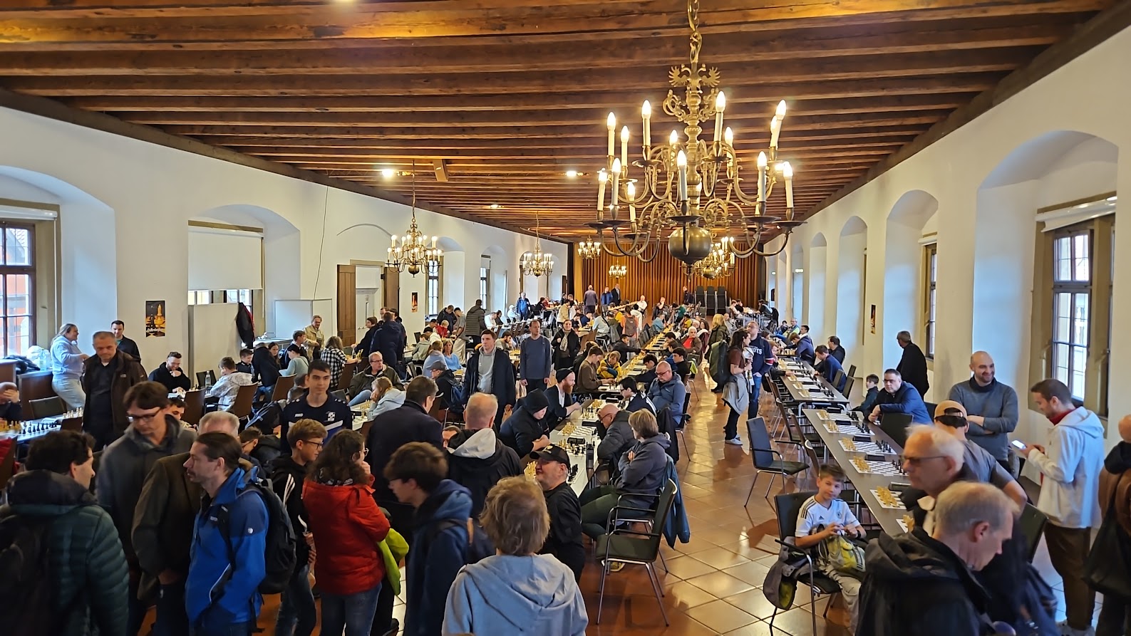 Ein noch wenig bekanntes, aber sehr empfehlenswertes Turnier ist die Deutsche Schnellschach-Amateurmeisterschaft (DSSAM), die in diesem Jahr zum zweiten Mal in Dinkelsbühl stattfand. Wer das Format noch nicht kennt: Es ist ähnlich aufgebaut wie die DSAM-Turniere, also mit Gruppen von A bis G, sodass man nur gegen Spielerinnen und Spieler ähnlicher Spielstärke antritt.